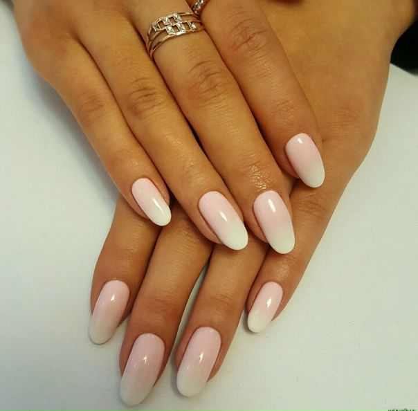 Маникюр омбре еще называют градиентным. В классическом варианте создают плавный переход от одного цвета на кончиках ногтей к другому — у основания.