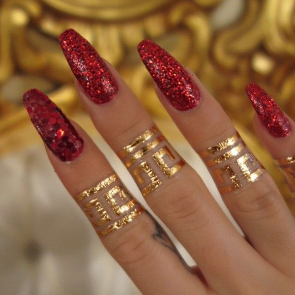 Золотые украшения станут прекрасным дополнением к дизайну ногтей в красном цвете и усилят эффект роскоши.