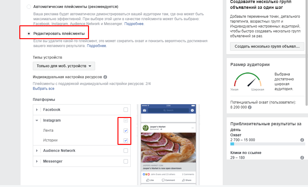 ΠΠ°ΡΠ΅ΠΌ ΠΎΠΏΡΠ΅Π΄Π΅Π»ΠΈΡΠ΅, ΠΊΠΎΠΌΡ Π²Ρ Ρ ΠΎΡΠΈΡΠ΅ Π²ΠΈΠ΄Π΅ΡΡ ΡΠ²ΠΎΡ ΡΠ΅ΠΊΠ»Π°ΠΌΡ ΠΈ ΡΠΊΠΎΠ»ΡΠΊΠΎ Π΄Π΅Π½Π΅Π³ Π²Ρ Ρ ΠΎΡΠΈΡΠ΅ ΠΏΠΎΡΡΠ°ΡΠΈΡΡ. ΠΠ»Ρ ΡΠ΅ΠΊΠ»Π°ΠΌΡ Π² Instagram Π΄ΠΎΡΡΡΠΏΠ½Ρ ΡΠ΅ ΠΆΠ΅ ΠΏΠ°ΡΠ°ΠΌΠ΅ΡΡΡ ΡΠ°ΡΠ³Π΅ΡΠΈΠ½Π³Π°, ΡΡΠΎ ΠΈ Π΄Π»Ρ ΡΠ΅ΠΊΠ»Π°ΠΌΡ Π² Facebook.